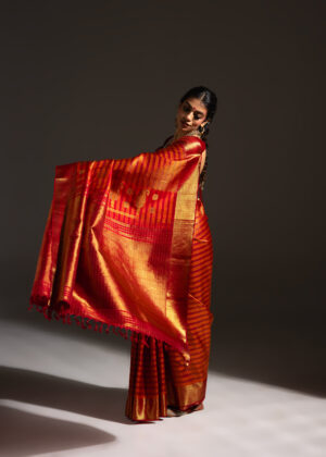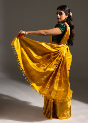 In the silence, the rhythmic mantra of a shuttle swiftly sprinting across, completes the warp and weft.